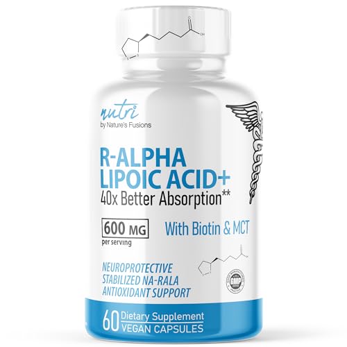 Home > Alpha Lipoic Acid Nutritional Supplements > Nutri R Alpha Lipoic Acid 600mg Capsules - R Lipoic Acid Stabilized with Biotin - Active Form R-ALA - Clinical Dosage - Powerful Antioxidant and Cellular Energy Support - 60 Vegan Capsules ; "Visit the Natures Fusions Store