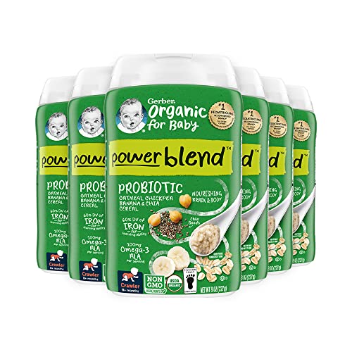 Gerber Organic Baby Food, Crawler, Powerblend, Probiotic Oatmeal Chickpea Banana & Chia Cereal