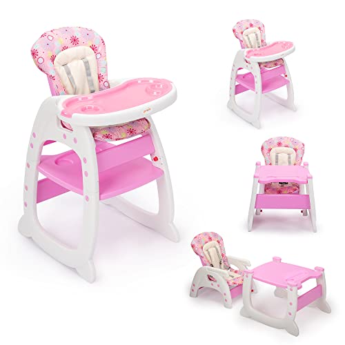 Home > Baby Highchairs > 3 in 1 Baby High Chairs,High Chairs for Babies and Toddlers Demolition into a Table/Chair,with Detachable Double Tray, 3 Position Adjustment,5 Point Harness (Pink) ; Visit the Sandinrayli Store