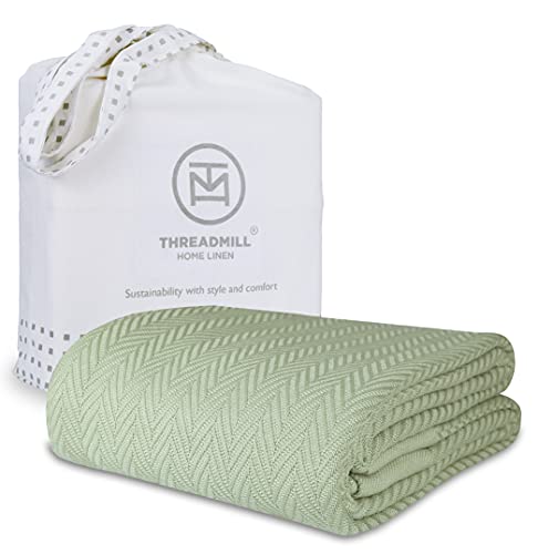 Home > Bed Blankets > Threadmill 100% Pure Cotton, Luxury King Size Soft Sage Blanket - Herringbone Pattern, Lightweight, Soft & Cozy Premium Fall Throw Blanket for All Seasons, 350GSM & 106x92 with Free Tote Bag ; Visit the Threadmill Home Linen Store