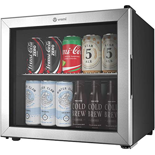 Vremi 1.7 Cubic Feet Beverage Cooler - Double Layered Glass Door Mini Fridge for Can Drinks