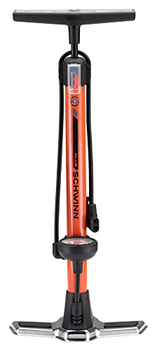 Home > Bike Pumps > Schwinn Air Center Floor Bike Pump, Up to 120 Max PSI, Dual Head Fits Schrader and Presta Valve Types, Easy-to-Carry Portable and Convenient Design, Bicycle Essentials for Easy Road Riding ; Visit the Schwinn Store