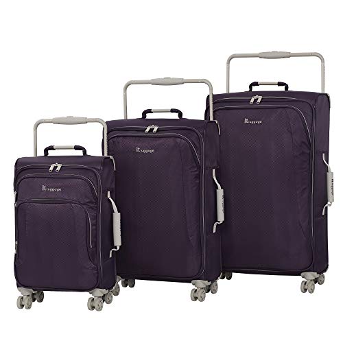 it luggage World's Lightest New York Softside 8 Wheel Spinner, Purple Pennant With Cobblestone Trim, 3-Piece Set (22/28/32)