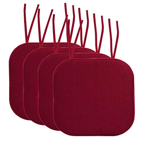 Home > Chair Pads > Sweet Home Collection Chair Cushion Memory Foam Pads with Ties Honeycomb Pattern Slip Non Skid Rubber Back Rounded Square 16" x 16" Seat Cover, 4 Pack, Wine Burgundy 4 Pack ; Sweet Home Collection