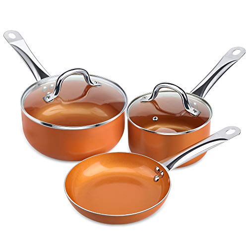 SHINEURI 5 Pieces Copper Cookware Copper Pans and Pots