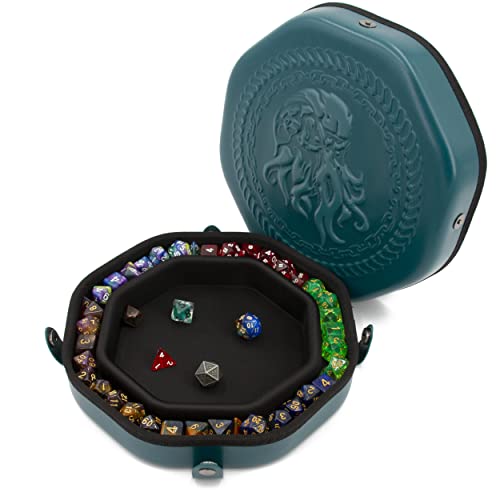Home > Dice Games > CASEMATIX Dice Tray and Dice Storage Case for Up to 115 RPG Dice - Dice Tray for Rolling with Magnetic Snaps, Embossed Sea Monster Design and Non-Scratch Interior for Random Rolls Dice Protection ; CASEMATIX