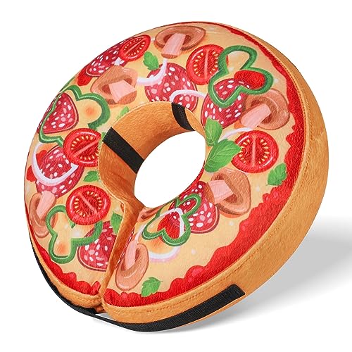 Home > Dog Recovery Collars & Cones > Grand Line Pizza Inflatable Collar for Dogs and Cats, Soft Protective Recovery Cone After Surgery, Blow up Pet Donut Collar Cone, E-Collar Alternative Does not Block Vision (Cartoon, Medium) ; Visit the Grand Line Store