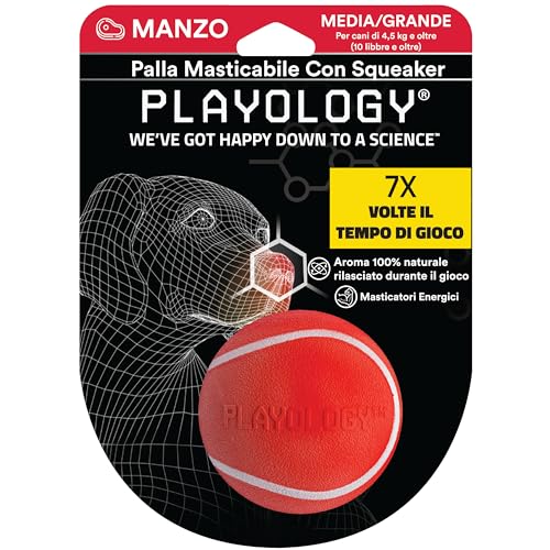 Home > Dog Toy Balls > Playology Squeaky Chew Ball for Dogs - Engaging All Natural Beef Scented Dog Toy, Medium/Large, Red - Squeak, Bounce, Fetch, and Play! ; Visit the Playology Store