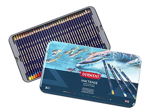 Derwent Colored Pencils, Inktense Ink Pencils, Drawing, Art, Metal Tin, 36 Count