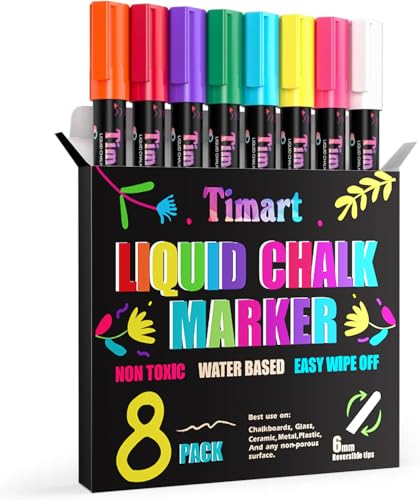 Home > Dry Erase & Wet Erase Markers > Liquid Chalk Markers, 6mm Bold Tip Chalk Pens, Dry Erase Marker Pens for Chalkboards, Signs, Blackboards, Windows, Glass- Reversible Tip, First Day of School Board Chalk Pens (Classic) ; Visit the Timart Store
