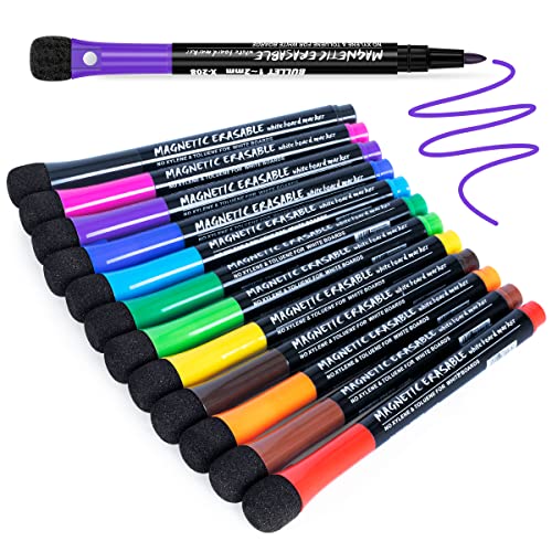 Home > Dry Erase & Wet Erase Markers > Magnetic Dry Erase Markers Fine Point Tip, 12 Colors White Board Marker with Eraser Cap, Low Odor Whiteboard Thin for Kids Teachers Office School Supplies ; Visit the JR.WHITE Store