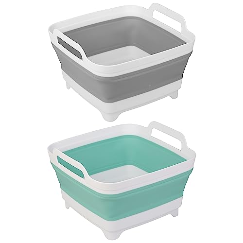 Home > Household Mop Buckets > 2 Pack Dishpan for Washing Dishes, 2.4Gal/9L Wash Basin with Draining Plug Carry Handles, Collapsible Bucket for Cleaning, Portable Sink, Foldable Plastic Tub ; Tiawudi