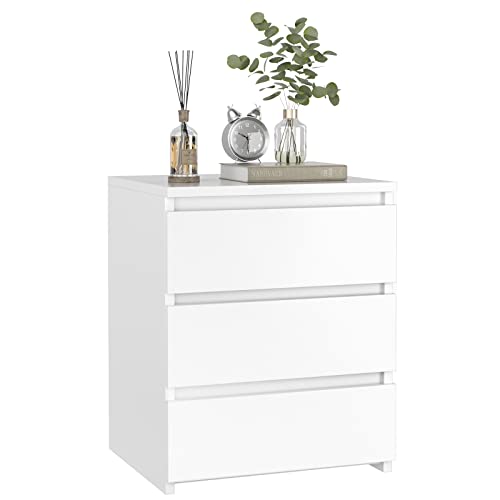 Home > Nightstands > FOTOSOK White Nightstand with 3 Drawers, White Bedside Table Night Stand for Bedroom with Cut-Out Handle, Sofa Side Table 3 Drawer Nightstand for Bedroom, 17.7W*15D*21.7H ; Visit the FOTOSOK Store