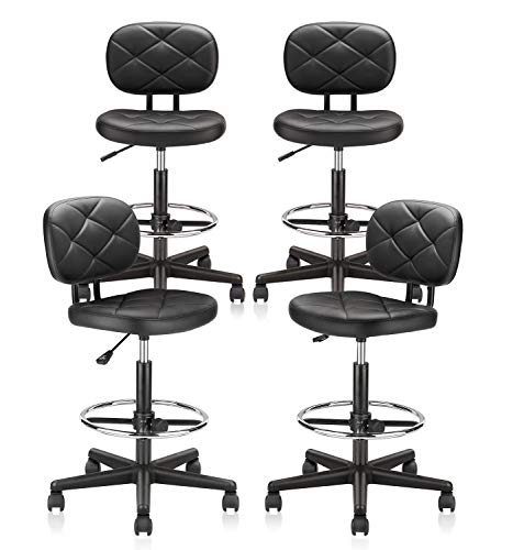 Home > Office Drafting Chairs > Tall Drafting Rolling Stool Chair with Low Back Support and Adjustable Foot Rest Ring Set of 4 PU Leather Vinly Wide Seat Swivel Standing Desk Chair for Office Home 4 Pack ; Visit the KLASIKA Store