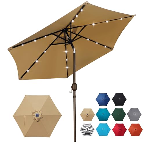 The umbrella is easy to assemble and has solar lights that add ambiance to outside evening gatherings.