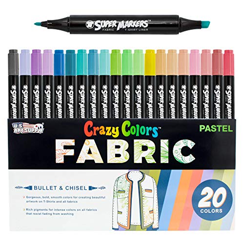 Home > Permanent Markers & Marker Pens > US Art Supply Super Markers 20 Unique Pastel Colors Dual Tip Fabric & T-Shirt Marker Set - Double-Ended Fabric Markers with Chisel Point and Fine Point Tips - 20 Permanent Ink Vibrant and Bold Colors ; US Art Supply