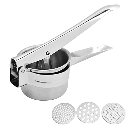 Large Stainless Steel Potato Ricer, 3 Interchangeable Discs for Fine, Medium, and Coarse