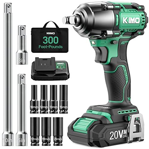 Home > Power Impact Wrenches > KIMO Cordless Impact Wrench 1/2", Brushless Impact Driver with 400 ft-lb Max Torque, 3000 RPM, 20V Electric Impact Wrench with 1 Hour Fast Charger & Variable Speeds, 1/2 Impact Gun for Car Home ; KIMO