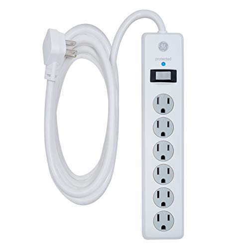 Home > Power Strips > GE 6-Outlet Surge Protector, 10 Ft Extension Cord, Power Strip, 800 Joules, Flat Plug, Twist-to-Close Safety Covers, UL Listed, White, 14092 ; Brand: GE