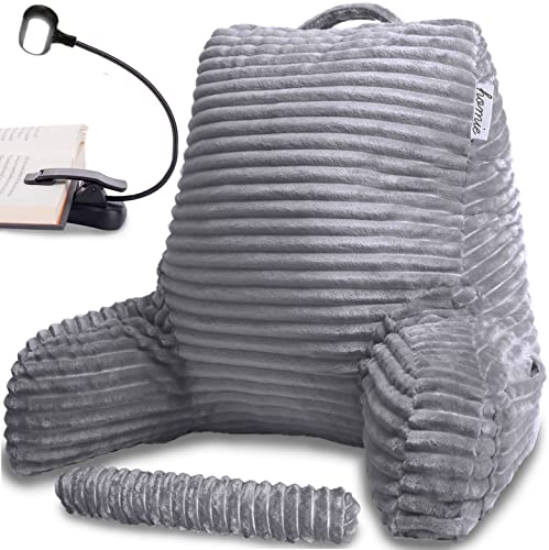 Home > Reading & Bed Rest Pillows > Homie Reading Bed Rest Pillow with Reading Light and Wrist Support, Has Arm Rests, and Back Support for Lounging, Reading, Working on Laptop, Watching TV (Gray) ; Homie
