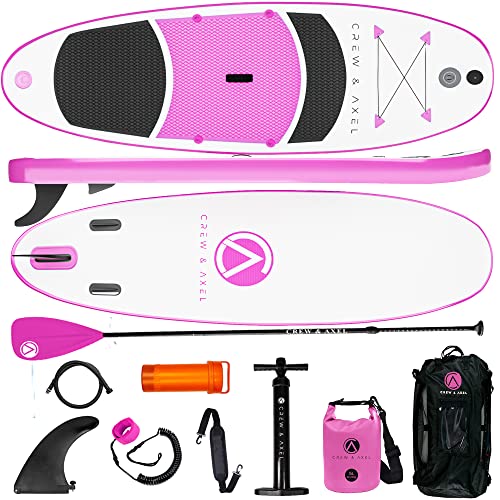 Home > Stand-Up Paddleboards > 2024 Crew Axel Inflatable Paddle Board 10’33’6” Extra Wide & Lightweight (18lb) Paddle Board – Premium SUP Set Includes 2 Bags, Floating Paddle, Camera Mount, 3 Fins, Dual Pump Kit ; Visit the Crew & Axel Store