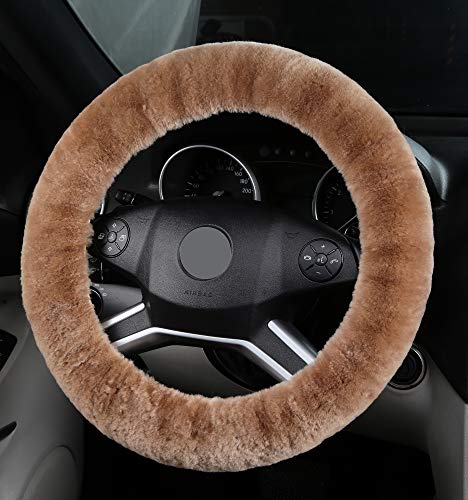 ANDALUS Car Steering Wheel Cover Fluffy Pure Australia Sheepskin Wool