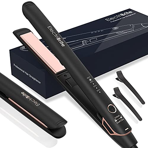 Home > Straighteners > Hair Straightener, Flat Iron 2 in 1 Straightener Curler with 3D 1 Inch Floating Plates Ceramic Tourmaline with 4 Adjustable Temperature Suitable for Straight Fine Thin Hair Types (Black) ; Visit the ElectriBrite Store