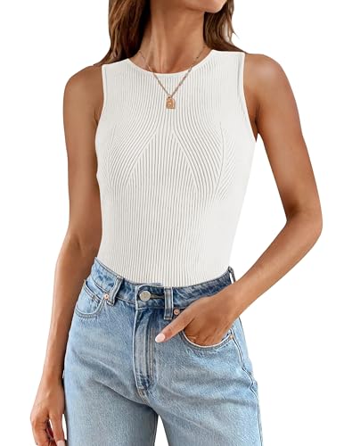 About ZESICA Women's Ribbed Tank Tops 2024 Summer Sleeveless High Neck Casual Slim Fitted Basic Knit Shirts