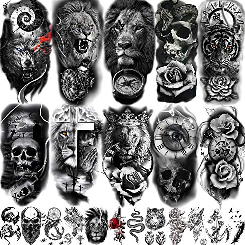 Home > Temporary Tattoos > COKTAK 68 Sheets Large Half Arm Sleeve Temporary Tattoos For Men Women Forearm, Tribal Wolf Tiger Lion Owl Skull Temp Halloween Fake Tattoo Stickers Adults, Black Realistic Tattoo Flower Rose Animals ; Visit the COKTAK Store