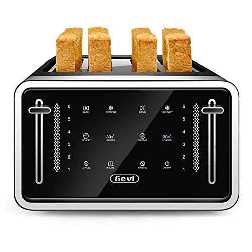 Home > Toasters > Gevi Toaster 4 Slice,Led Display Touchscreen Bagel Toaster with Dual Control Panels of Bagel/Reheat/Defrost/Cancel/Toasting One Slice/Longer Function,6 Shade Setting ; Visit the Gevi Store