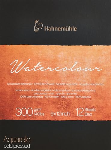 Home > Watercolor Paper > Hahnemhle Collection 100 Percent Cotton Watercolor Pad with 12 Durable Sheets, Vegan and Acid-Free (300 GSM, 9 x 12 Inch) ; Brand: Hahnemühle