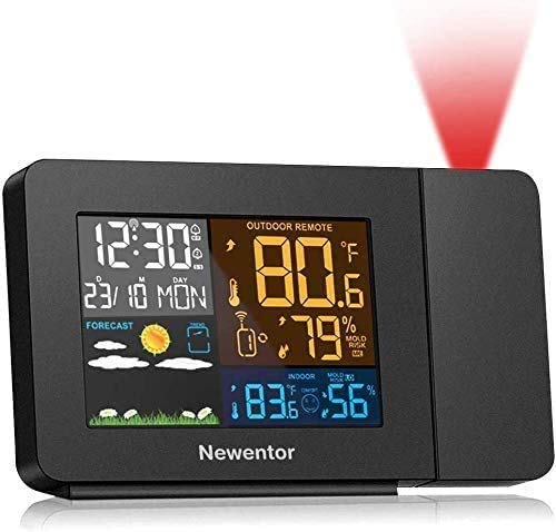 Home > Weather Monitoring Clocks > Newentor Projection Alarm Clock with Weather Station for Bedrooms, Projector Clocks with WWVB Function, Wireless Indoor Outdoor Thermometer Temperature Humidity Monitor Gauge Hygrometer with Calendar