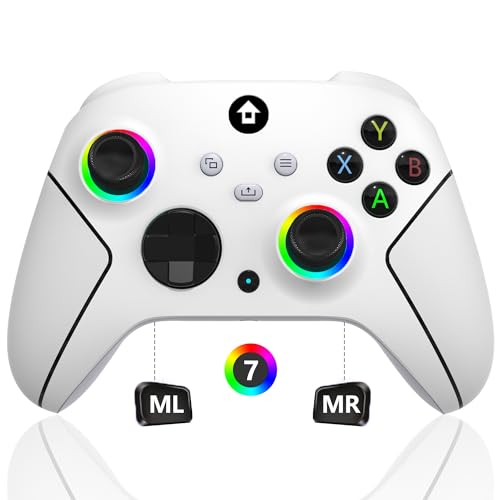 Home > Xbox One Controllers > YUYIU Upgraded Wireless Controller with 7 Colors RGB Light for Xbox Controller, Xbox One Series X|S,Consoles,Steam PC Windows, Dual Vibration/Turbo/Programmable, with 3.5mm Audio Jack, 2.4GHZ Adapter ; Visit the YUYIU Store